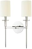 The Amherst collection from Hudson Valley offers a refined, sophisticated choice. The simple lines are classic, but the striking lines and minimal ornamentation feel modern. Smooth cylinder shades top each fixture and match the clean profile of this design. This wall sconce features a polished nickel finish. A beautiful design from Hudson Valley Lighting. Polished nickel finish. Ivory mini shades. Takes two 60 watt candelabra bulbs (not included). 18 3/4" high. 13" wide.