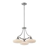 Transitional 3 Light Dinette Chandelier from the Copenhagen CollectionThis contemporary collection features clean, sweeping lines and a simplicity reminiscent of the city for which it is named. Its antique nickel finish has a soft matte look that is in style right now in today s home décor. The opal etched glass has a slight, retro look that is as appealing in a loft as it is in an elegant home.Features:Utilizes (3) 60W Xelogen E12 Base BulbsWeight: 16Dimensions: 64" H x 25" WMaterial: SteelFeatures Opal Etched Glass ShadesWire Length: 10 CUL Listed: Incandescent DryAbout Quoizel:Founded in 1930 in New York, Quoizel is dedicated to integrity and quality in both it s products and the way it does business. Quoizel is located in Charleston, South Carolina and remains privately held, and family owned and operated.
