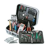 3 pc trimmer set / Blowing brush / Feeler gauge. / 6" Tweezer (reverse action) / 8 oz ball peen hammer / 7 in 1 Crimping Tool / Inspection mirror / Precision wire stripper / Oil can / 10 pc miniature combination wrench set / Mini-flash light / Professional multimeter / 4" and 5" Side cutters / 6 pc precision screwdrivers / 4.5", 5" & 6" Needle-nosed pliers / 7 pc folding hex key set / 9.5" Pump pliers / 23 pc 1/4" socket set / Snap ring plier set / Ratcheted screwdriver handle with 7 pc nutdriver blades, 4 pc hex driver blades / Center punch Tool / Component storage box / 6" Steel ruler / 5" Electrician's scissors / Solder aid set / Cable splicer's knife / 2 pc spring hook set / 2 pc removable Tool pallets / Quick heat soldering iron Contains most Tools needed in General maintenance and repair Various Tools for Multiple reasons Contained in a convenient Carrying case